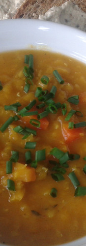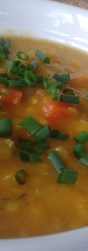 Roasted Sweet Potato, Leek & Red Lentil with Yellow Curry Soup